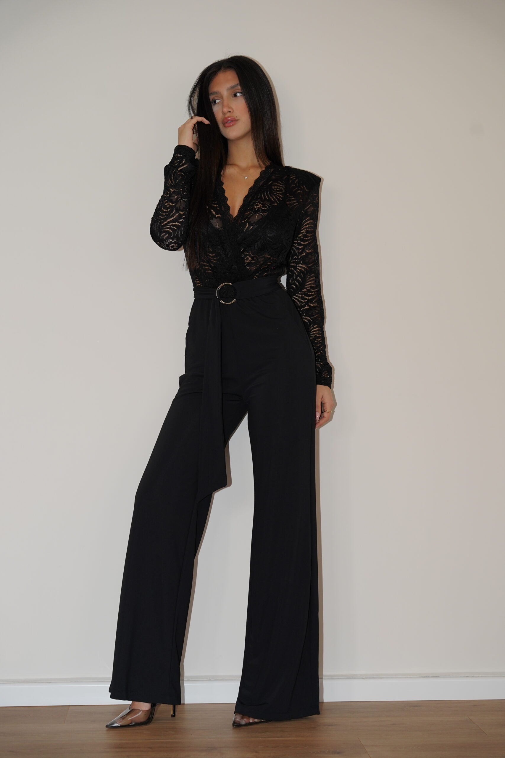 אוברול מעטפה תחרה שחור