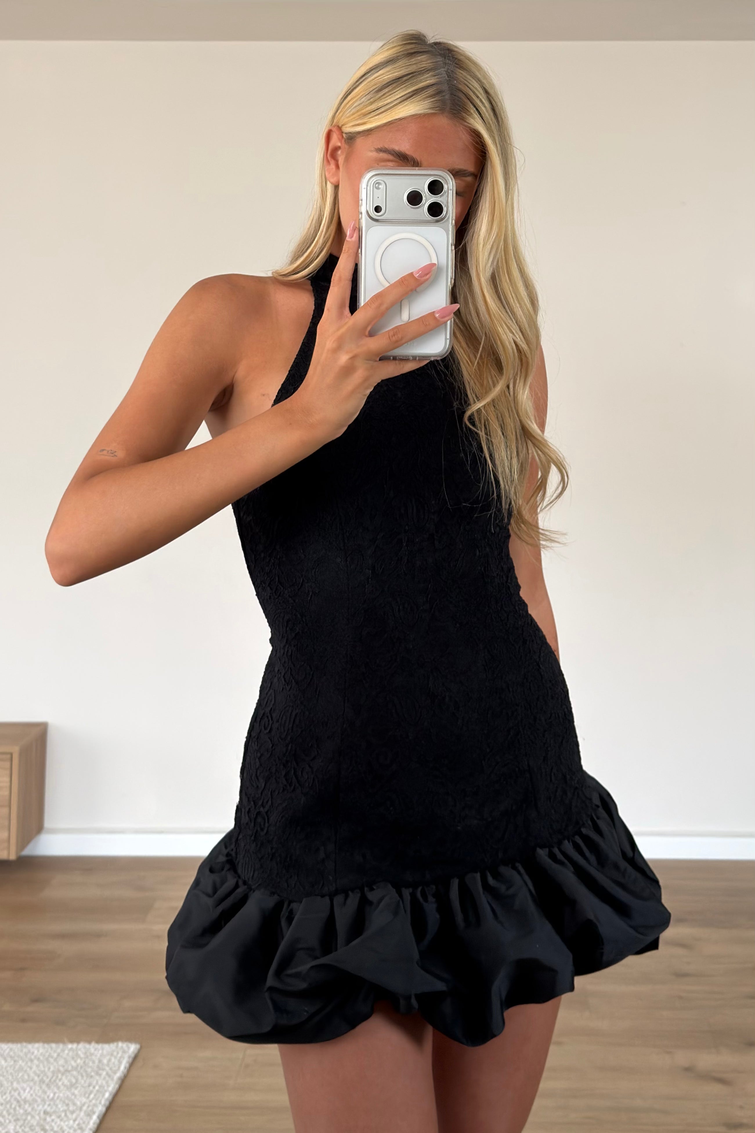שמלת צ׳ילה בשילוב כפפות שחורה