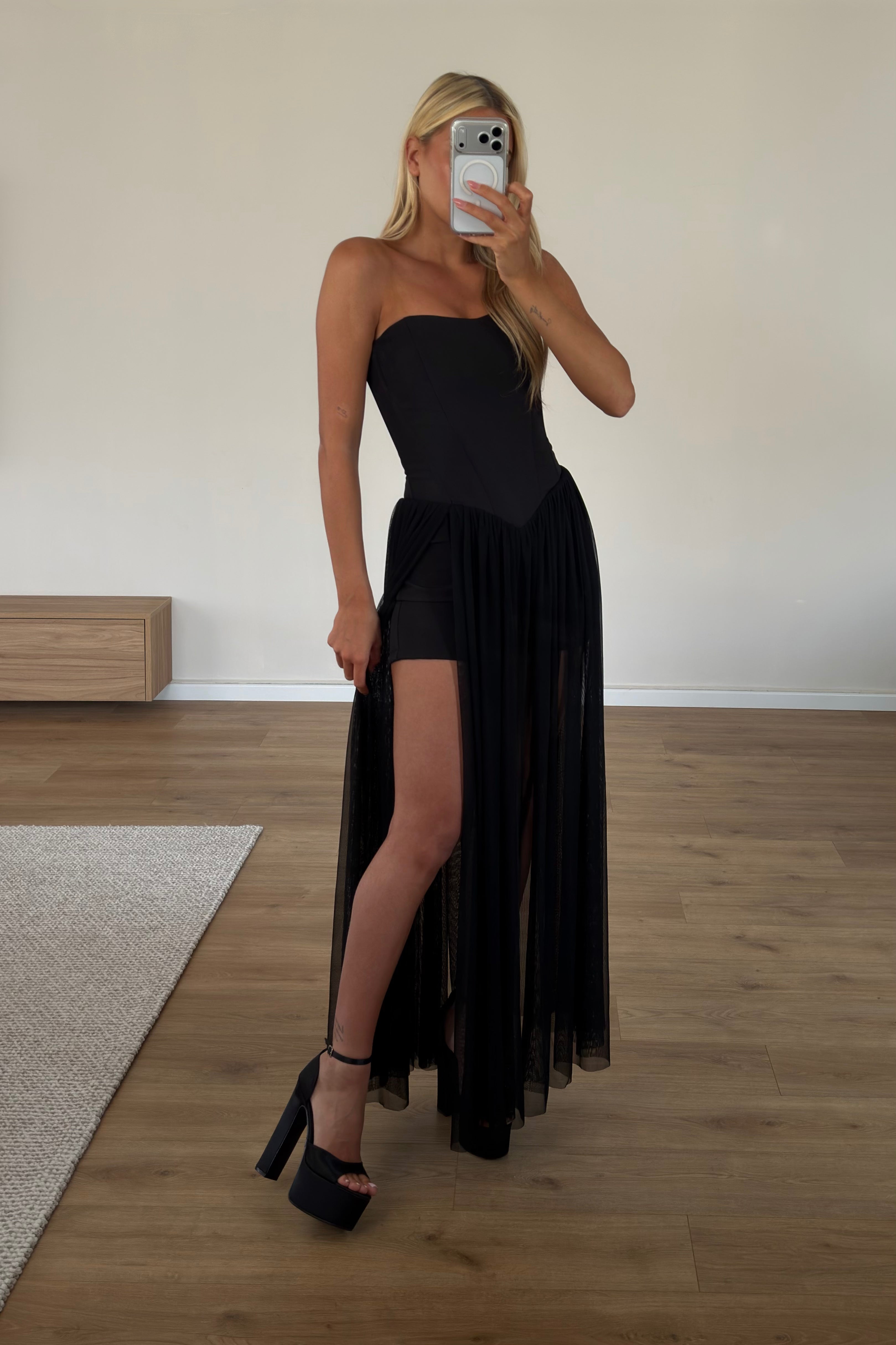 שמלת סטרפלס לידר שחורה
