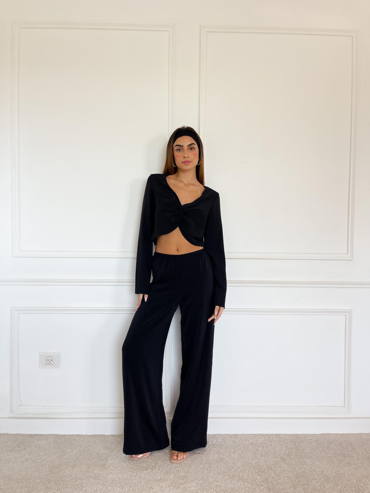 חליפת סטרפלס סיבוב שרוול ארוך שחורה