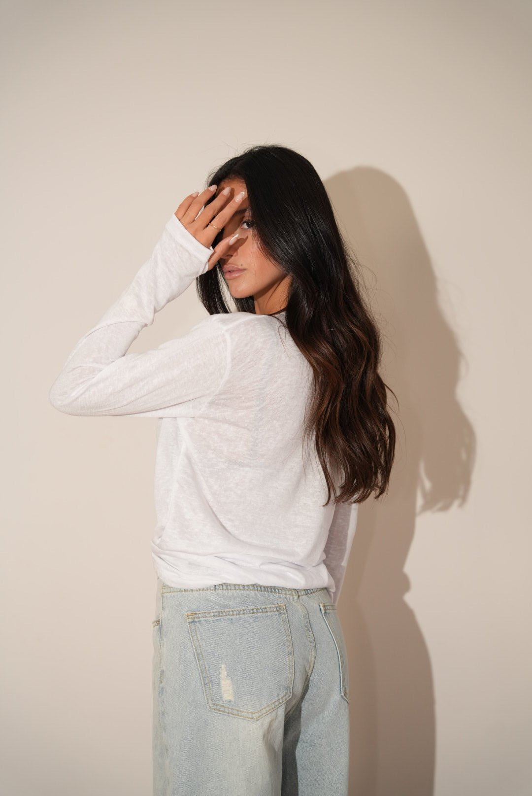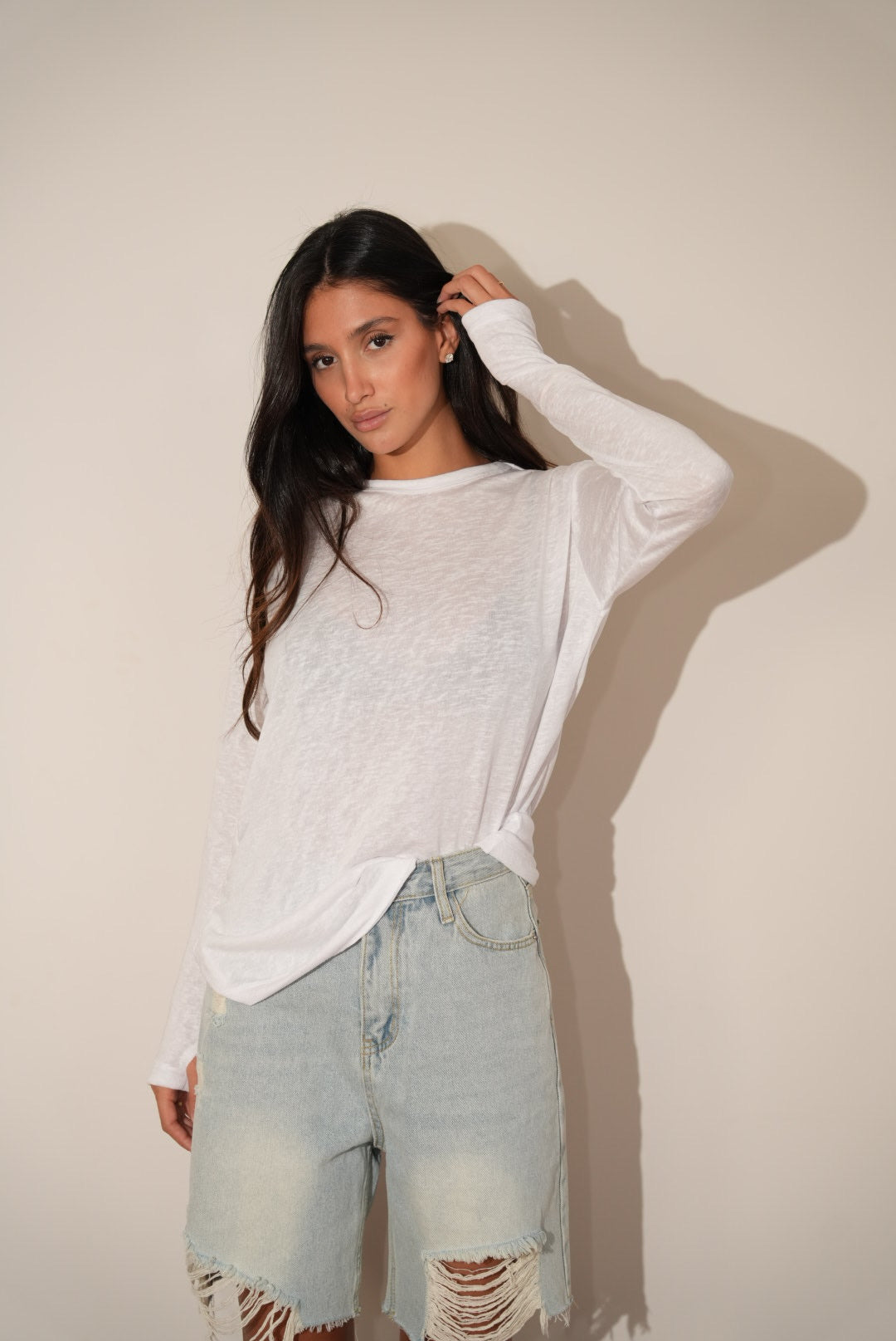חולצת שרוול ארוך עננים לבנה
