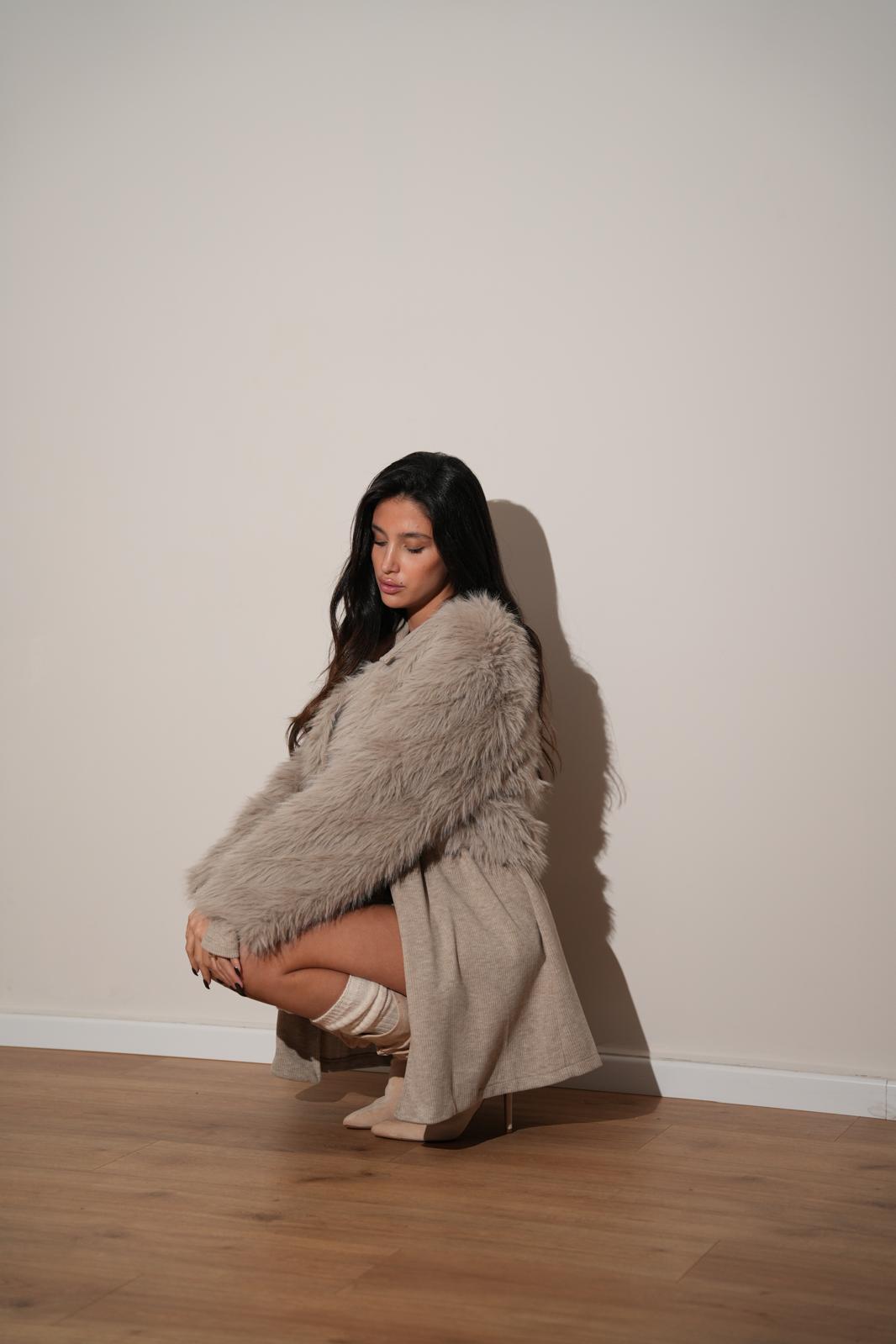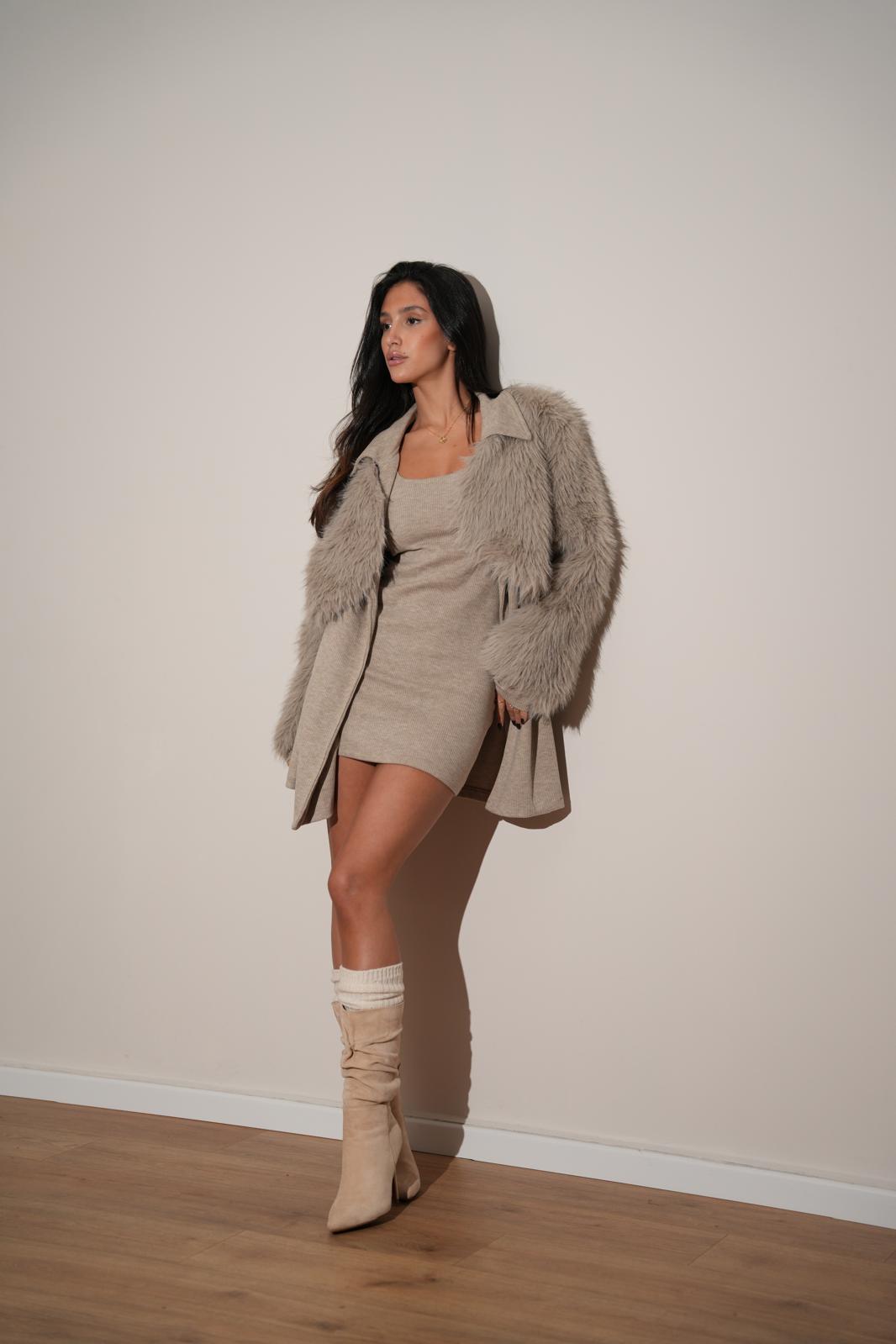 ג׳קט פרווה מארי אפור
