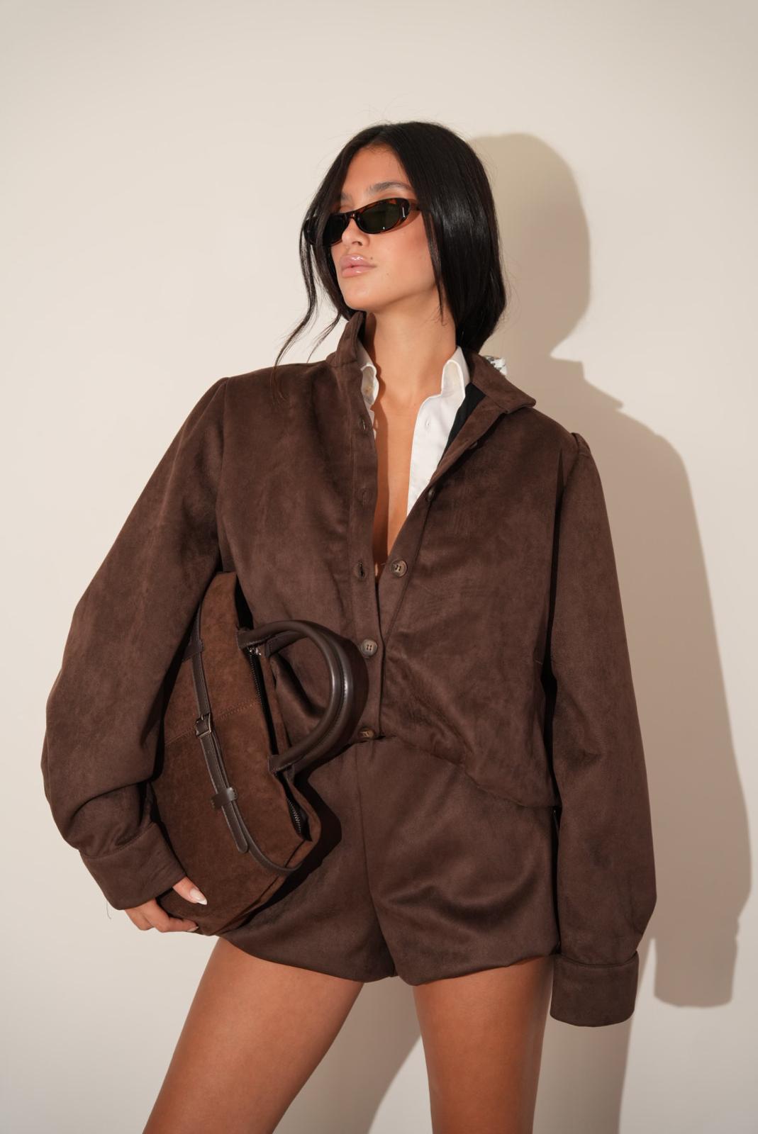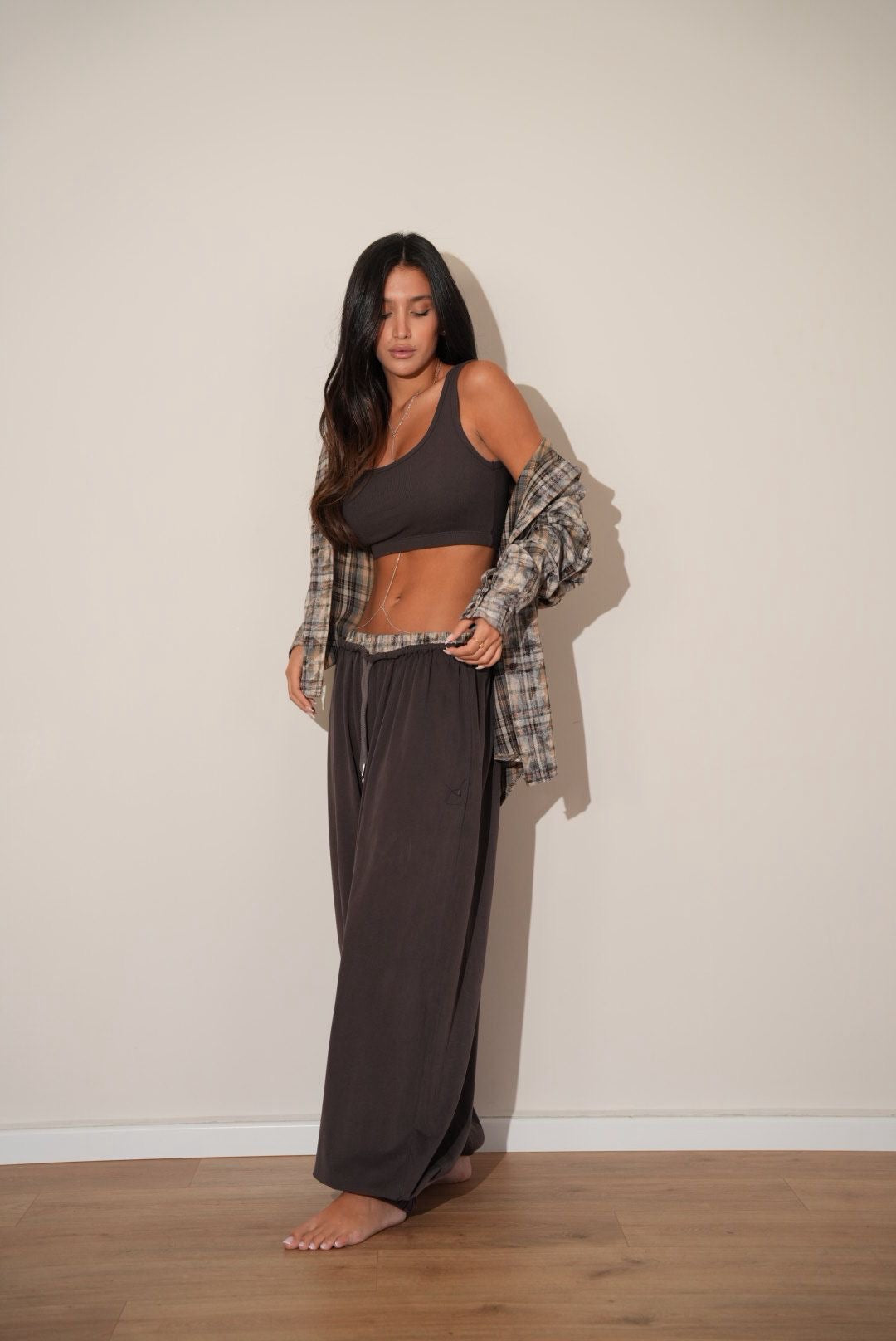 חליפת 3 חלקים משבצות אבן בשילוב חום