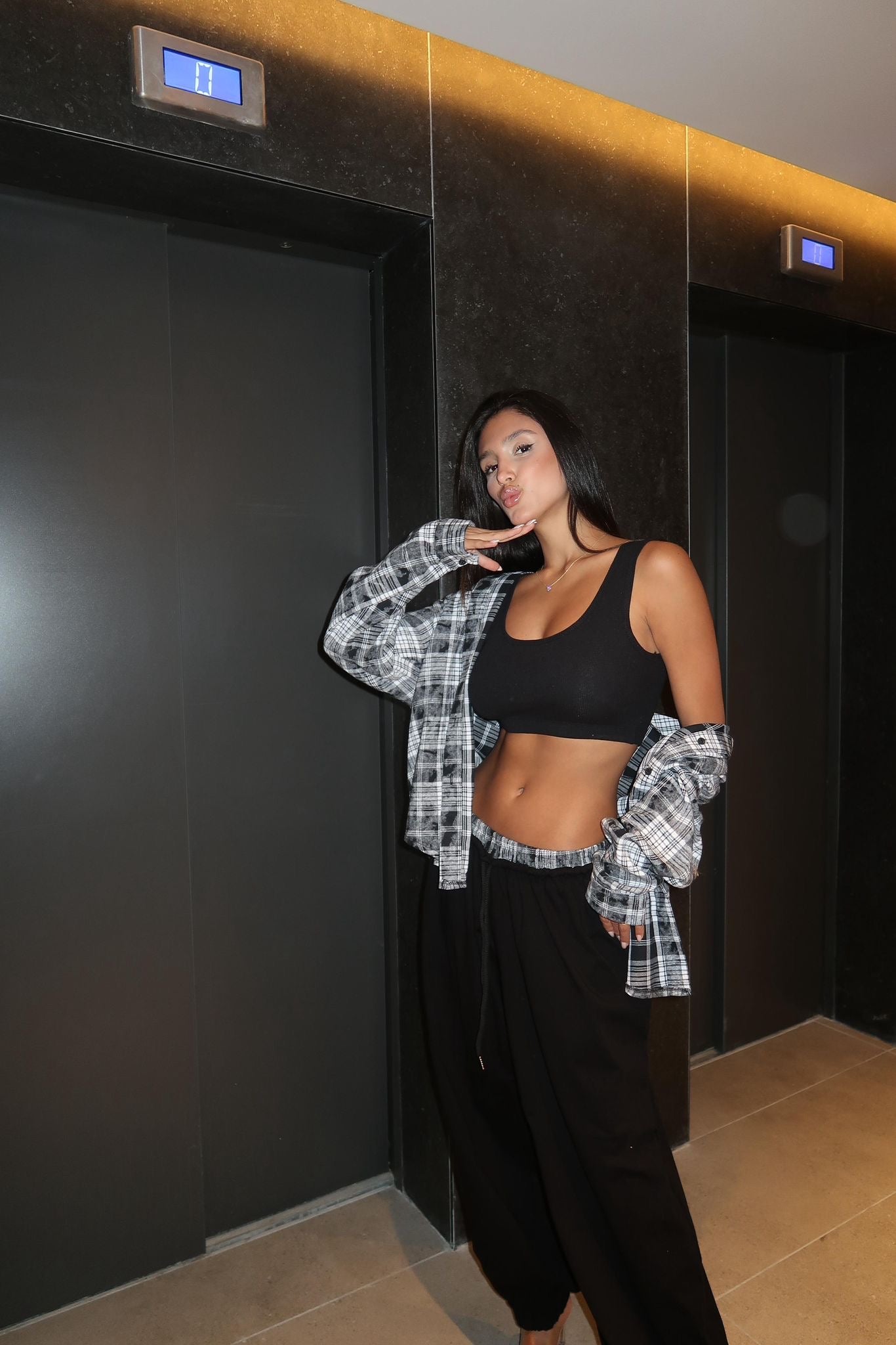חליפת 3 חלקים משבצות שחורה
