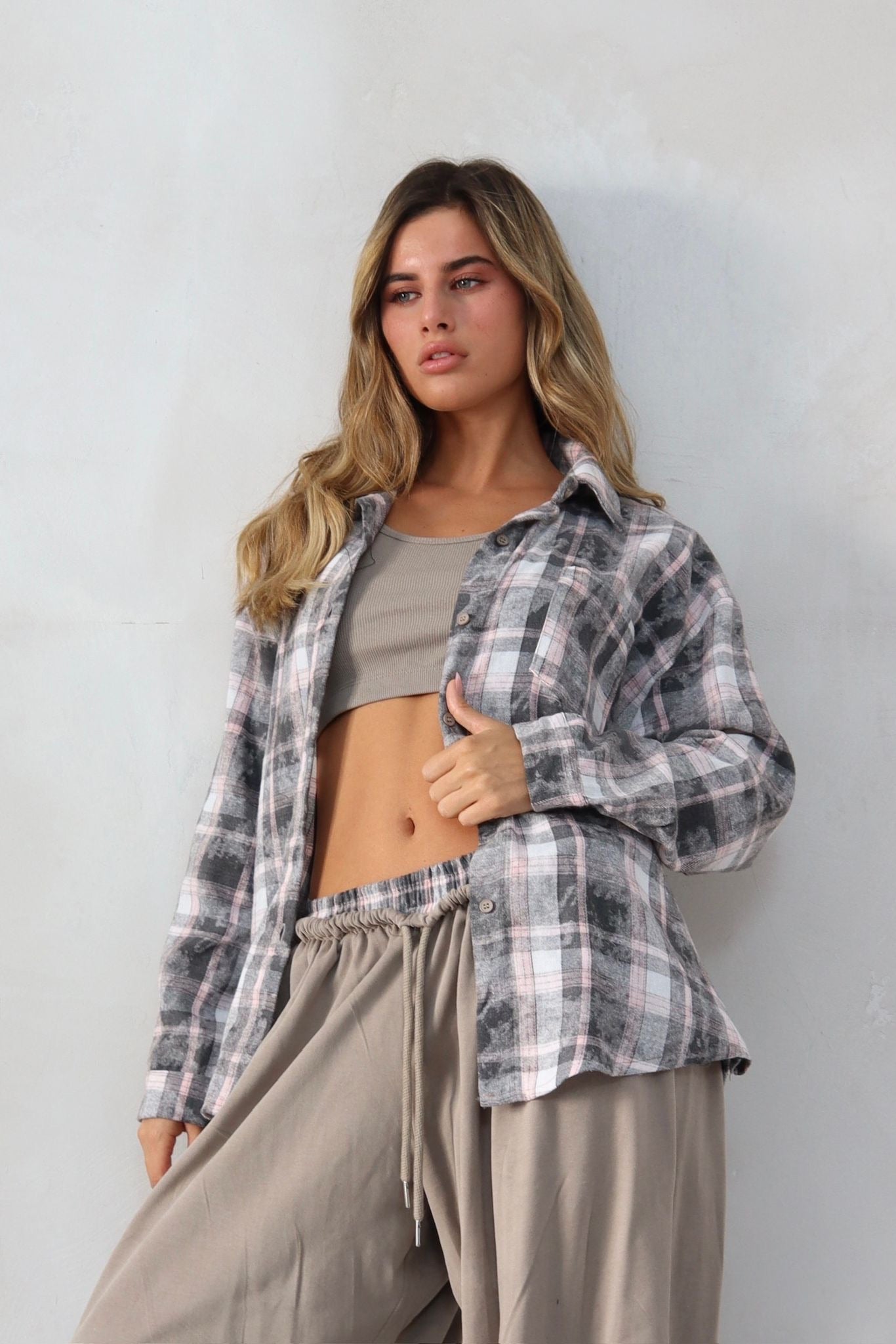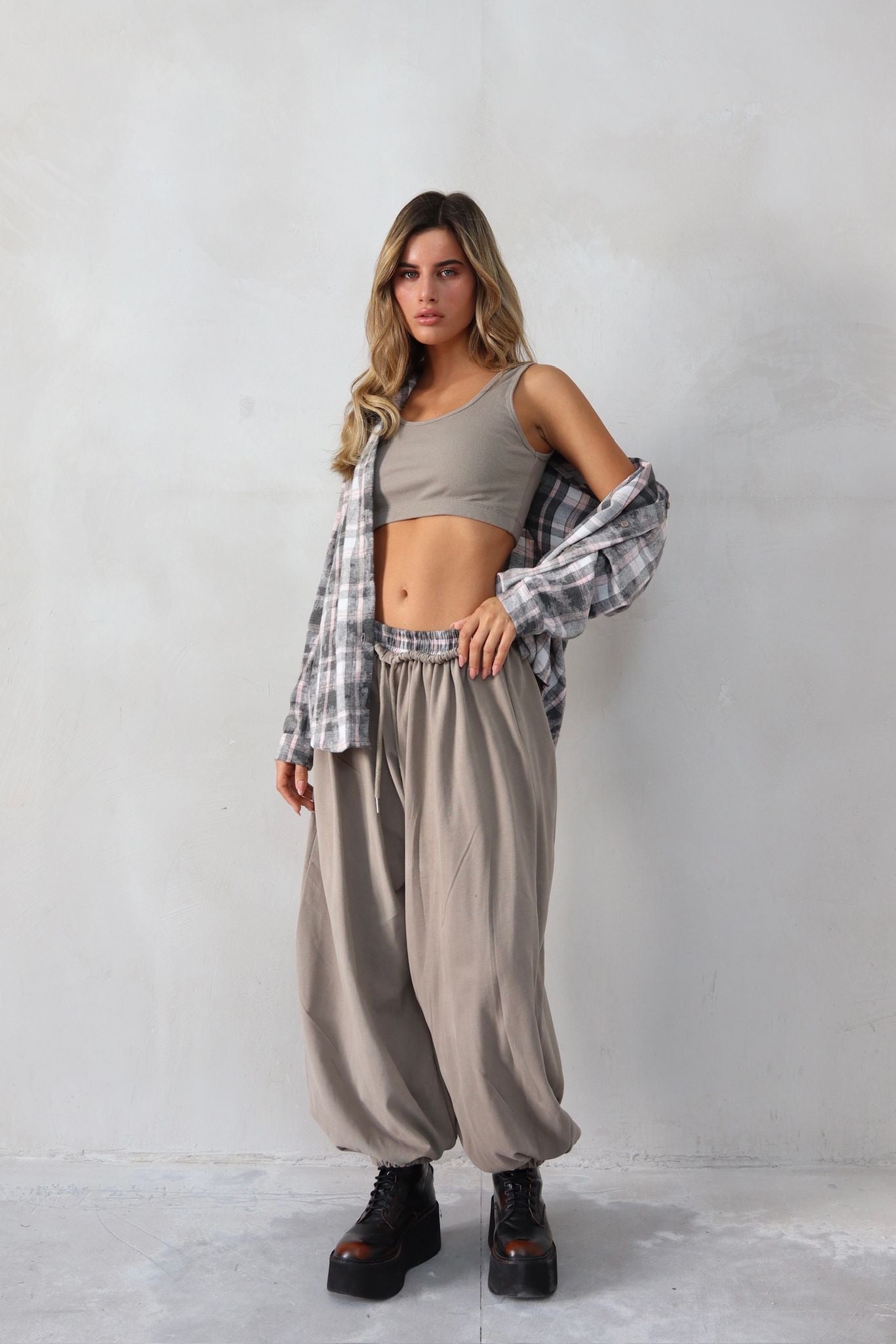 חליפת 3 חלקים משבצות אפורה